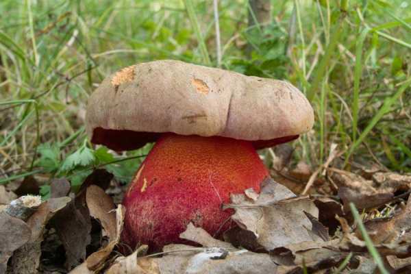Этот токсичный и ядовитый гриб – житель европейских лиственных лесов. Оранжево-розовая шляпка достигает 15 см в диаметре, гладкая на ощупь, со светлой мякотью, синеющей на срезе. Выдает токсичность такого боровика его ножка, которая находится в одной цветовой гамме со шляпкой, но покрыта вверху густой и плотной красной сеткой.
