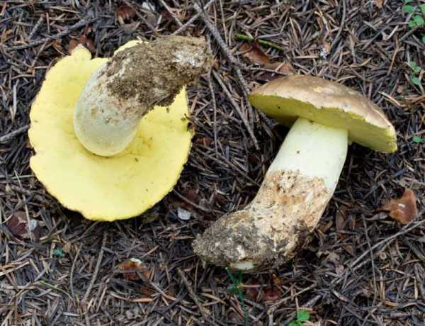 Мякоть боровика белого или светлого желтого, лимонного оттенка. У большинства видов срез синеет, у некоторых – цвет остается без изменений или краснеет.
