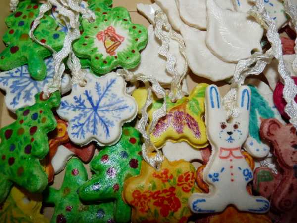 Фигурки из неокрашенного теста имеют светло-бежевый оттенок, но массу можно окрашивать на этапе замеса, а готовые изделия покрывать лаком, акриловыми красителями, акварелью или гуашью.