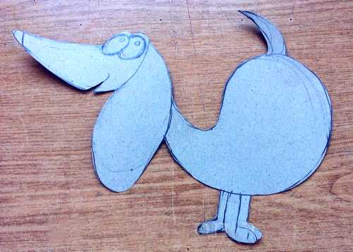 1. Распечатайте на принтере рисунок таксы или же нарисуйте сами. Перенесите на картон и вырежьте изображение по контуру.