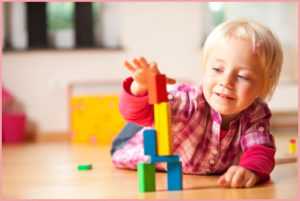 На фото смешной малыш из разноцветных кубиков мастерит ракету, не иначе! )) Детские забавы увлекают! ) Ребёнок играет забавно! )
