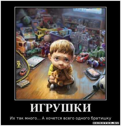 Море игрушек братишку не заменят! Грустный малыш на картинке скучает в одиночестве!