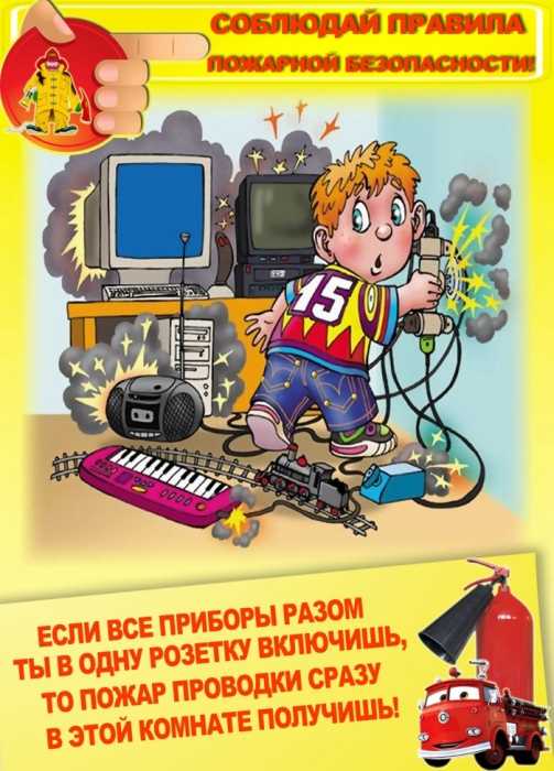Пожар может произойти где угодно: на заводе, на улице и даже в твоей собственной квартире, если ты, малыш, не будешь соблюдать простые правила. Например, не стоит включать все электроприборы в одну розетку!