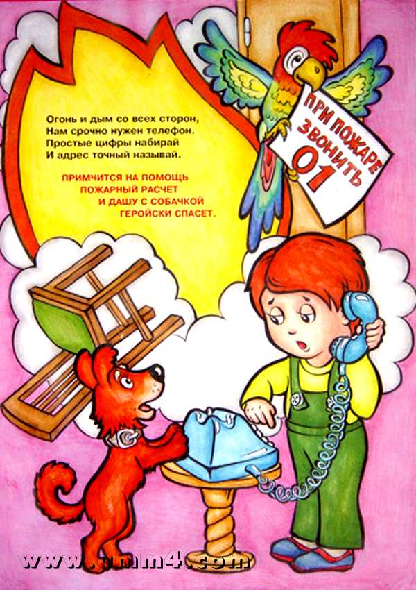 Красочные рисунки, а также стихи, помогут Вашему ребенку лучше запомнить правила пожарной безопасности.