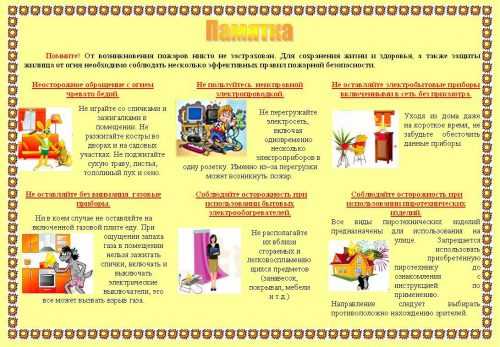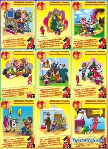 Все эти вышеприведенные картинки по пожарной безопасности можно распечатать и сделать для детей отдельный плакат.