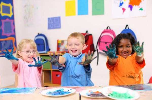 Дети кивают головой, скоморох радуется и хлопает в ладоши. Помощники выносят на сцену огромный белый ватман, кисточки и стаканчики с водой. Осень объясняет правила, где детки должны создать яркий коллаж, используя не только краски, но и листочки.