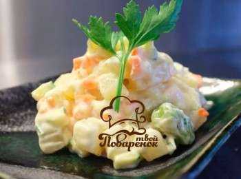 Салат «Оливье» готов! Украшаем и подаем к столу!