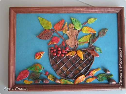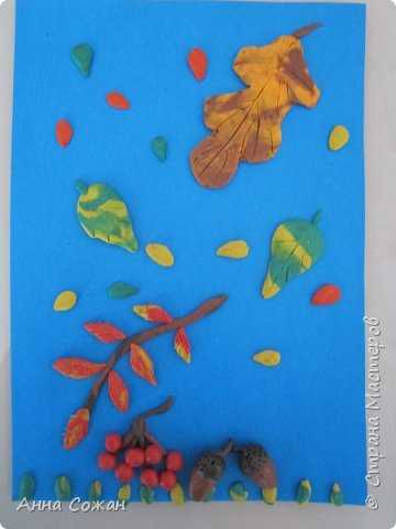 Выполняя картину сложнее, можно дополнительно использовать различные природные материалы. Так, для изготовления пластилиновой картины «Осень» понадобится: