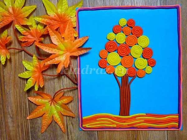Итак, что же приходит на ум, когда разговор заходит о золотой осени. Конечно же, яркое осеннее дерево, разукрашенное природой. Именно его мы и предлагаем вам нарисовать в этом уроке, но использовать для выполнения задуманного не обычные карандаши или краски и кисть, а брусочки мягкого пластилина и свои собственные пальцы. Подробная информация о пластилинографии на осеннюю тематику приведена ниже.