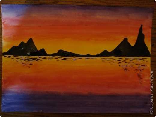 На улице лето. Так хочется на море К сожалению, не могу себе этого позволить, но Хочу предложить мастер-класс по рисованию заката на фоне моря.