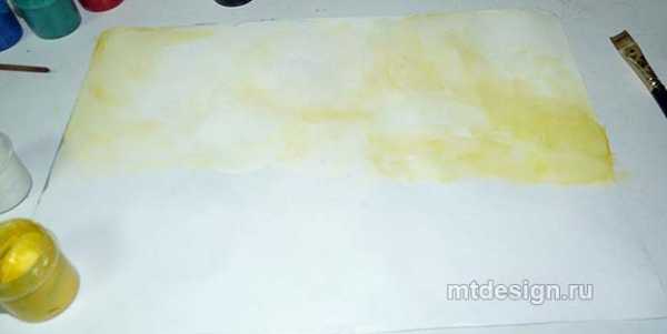 Начнем с фона. Нам понадобится желтая, фиолетовая, синяя и белая краска. Рисуем таким образом, чтобы не было видно границ.