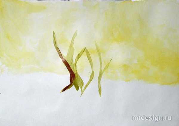 В нашем рисунке, выполненном красками большую часть рисунка будет занимать нижняя часть, часть земли.