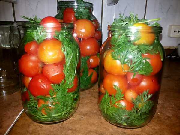 Внимание! Помидоры черри с морковной ботвой на зиму консервируют в литровых банках.