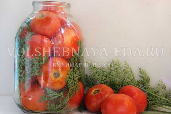 Помидоры – продукт не скоропортящийся, они могут лежать долго. Сохранить зимой этот овощ можно консервированием. В качестве пряной и ароматной приправы используют морковную ботву. На банку емкостью 3 литра потребуется:
