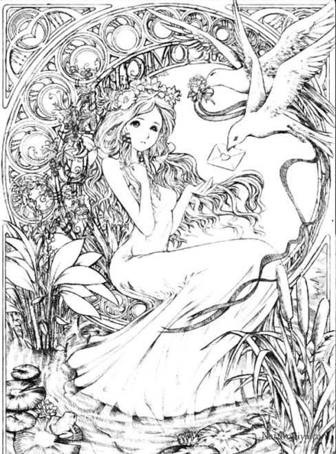 Сильным благостным воздействием на прекрасную половину человечества обладают раскраски с изображением… прекрасной половины человечества. Красивые девушки – принцессы, русалки, сирены, лесные ведьмы – одна из любимых тем многих дам, увлечённых раскрашиванием.