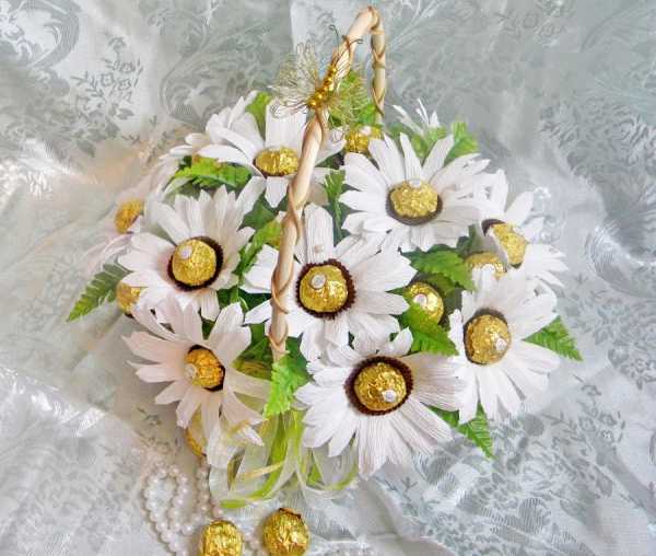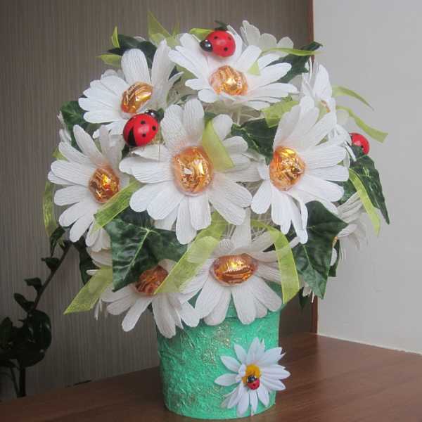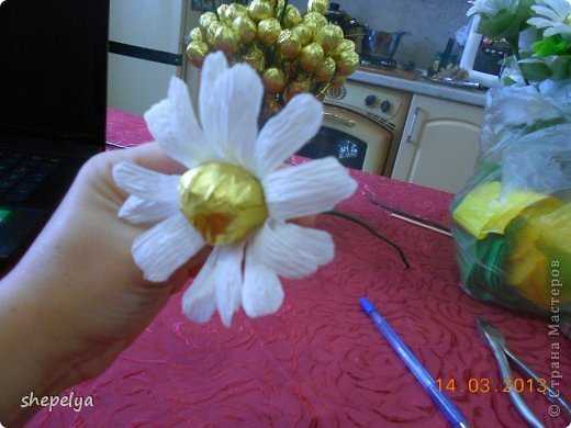 Букеты из конфет ромашки своими руками с пошаговыми фото