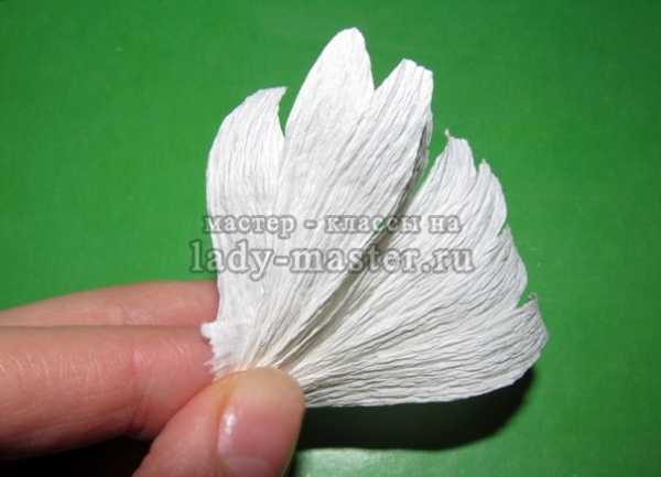 11. Ранее приготовленную заготовку сложите гармошкой, накладывая более тесно один лепесток на другой. Сделайте несколько таких гармошек, 4–5 штук.