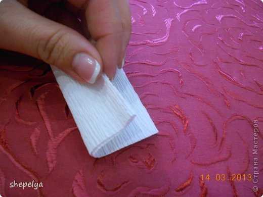 Отгибаем, а затем выворачиваем край белой бумаги.