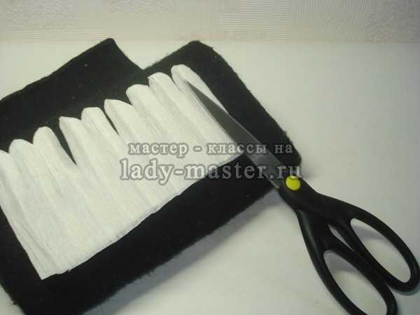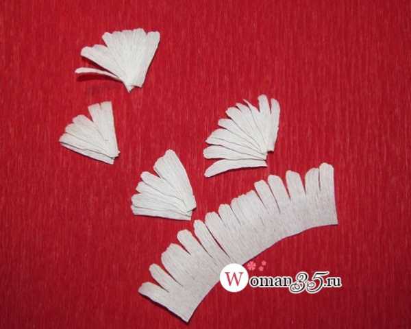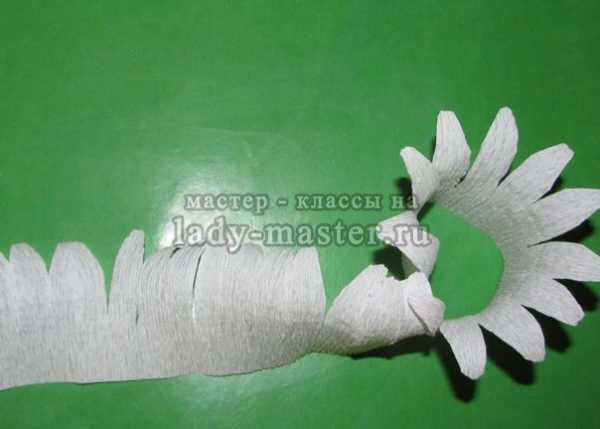 Далее маникюрными ножницами вырезаем лепесточки ромашки, шириной примерно 5-6 мм.