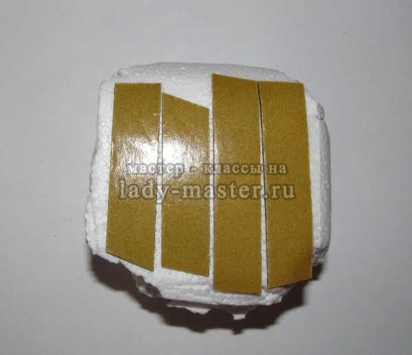 32. На пенопласт наклейте несколько полосок толстого двустороннего скотча.