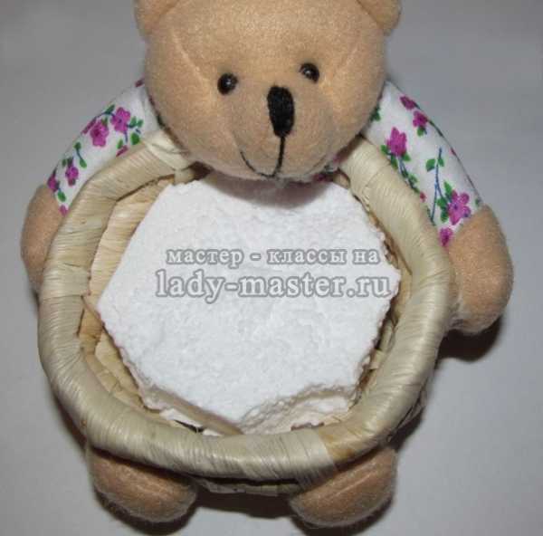 33. Зафиксируйте пенопласт на дне корзиночки. Такой скотч очень прочно держит конструкцию.