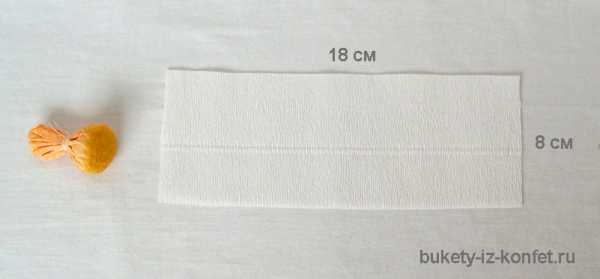 Для лепесточков ромашки вырезаем прямоугольник из белой гофрированной бумаги 18 на 8 см.