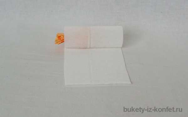 12. А теперь просто приклеивайте к скотчу наши лепестки-гармошки, одну за другой, пока не обернете всю конфету.