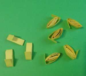 Заготовки для хвоста и крыльев синички имеют следующий вид. Для этого широкие полоски мелко надрезают ножницами. Когда работа закончена, приступают к сборке. Элементы аккуратно приклейте друг к другу.