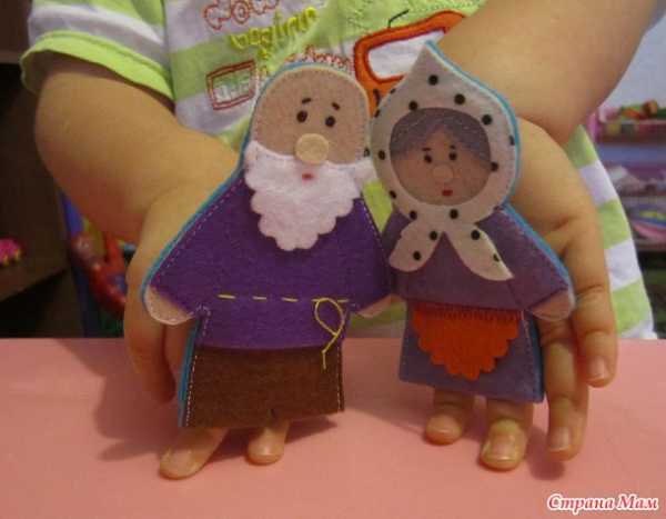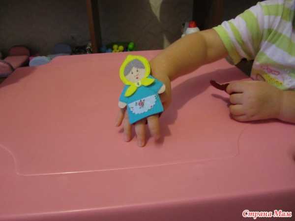 У таких кукол есть небольшое неудобство – это размер карманчика для пальцев. Если сказку показывает взрослый – кармашек надо побольше, а если играют сами дети – то нужен поменьше. Иначе получается как на этом фото – бабуся в мини-юбке.