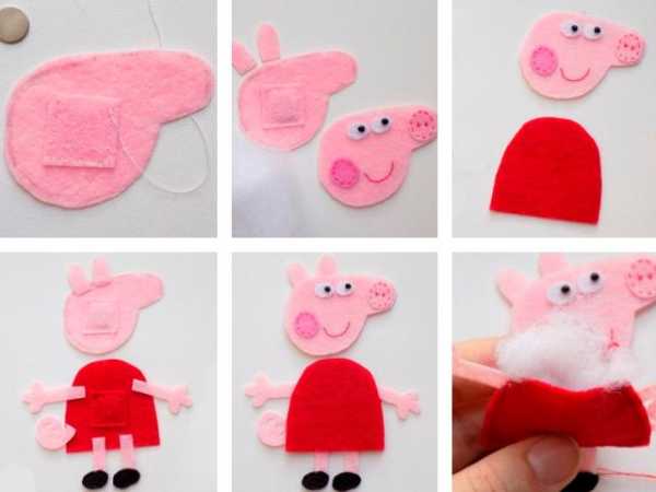 Кукол из фетра для сказки «Три поросенка» можно сделать разными способами. Игрушки могут быть как сложными, детализированными, так и простыми. Один из вариантов выкройки для пальчикового театра из фетра своими руками (поросенок) ниже. Но поросенка можно нарисовать и схематически. Игрушка может состоять только из розовой основы, хвостика, ушек и рыльца – наличие даже только этих элементов уже сделает куклу узнаваемой. Конечно, не обойдется представление и без домика трех поросят.