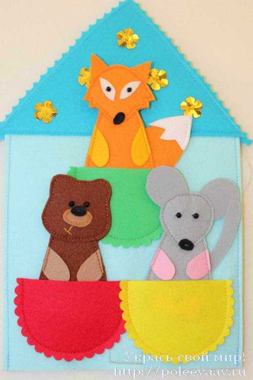 Из оставшегося фетра можно сделать домик с кармашками для всех персонажей – теремок.