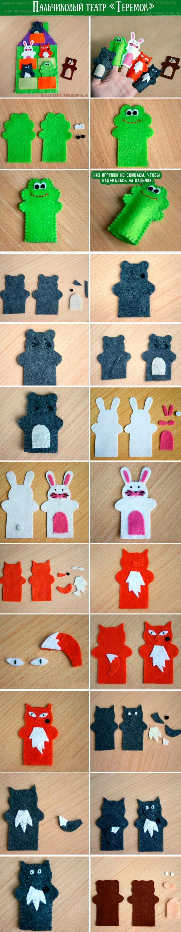 Можно сшить целый пальчиковый театр по мотивам детских сказок.
