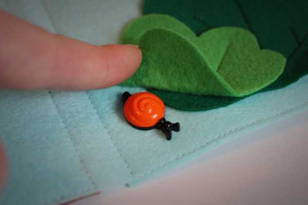 на ней пришиты пуговки (1-улитка, 2 - бабочки, 3 - клубнички под кустом, 4 - цветочка на дереве)