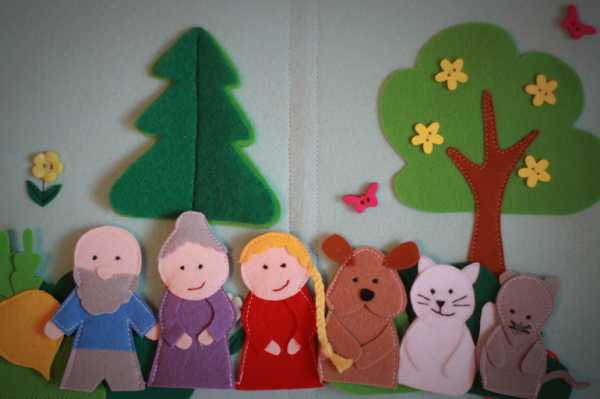Кукольные персонажи из бумаги очень недолговечны, из ткани плохо держат форму, для вязаных кукол нужен определённый опыт, и только для изготовления кукольного театра из фетра своими руками не нужно каких-то специальных навыков. Этот материал очень хорош тем, что его не нужно обмётывать, он не сыпется, его можно склеивать, он хорошо держит форму, не садится и не тянется.